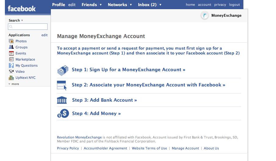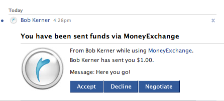Steve Case wants to make some new friends on Facebook. Today, his startup Revolution Money launched a friend-to-friend payment application on Facebook called MoneyExchange (as of this writing, it is still waiting to be added to the Facebook Application directory, but click on the link above and it should take you there if you are a Facebook member). Just like PayPal, which already has an app on Facebook, MoneyExchange lets you send money to your friends or receive money from them. Of course, if they want the money, they have to sign up for the application, and link it to their bank account. But that’s exactly how PayPal went viral. Revolution Money is betting that putting a payment service inside a social network will multiply that viral effect.