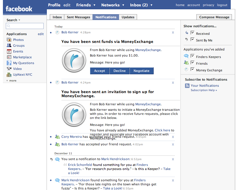 Sending and receiving funds on Money Exchange is free (as it is on PayPal for funds between two PayPal members). Dave Cautin, the senior vice president in charge of Revolution Money’s online business explains, “It is an opportunity to very easily collect money from your friends and associates. It could be used by housemates sharing the rent, or friends chipping in to buy a group gift.” Of course, there are many other apps that do this on Facebook already, including ChipIn, CashFly, and PayFriends, which are all based on PayPal. OboPay, which lets you text money to your friends from a mobile phone, also has a Facebook app. None of these are particularly popular, however. PayPal has 65 active daily users on Facebook. ChipIn has 81. CashFly and OboPay each have 3.