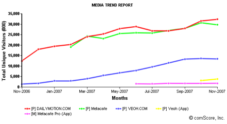 —VeohTV has 2.5 million active viewers (also, as of November).