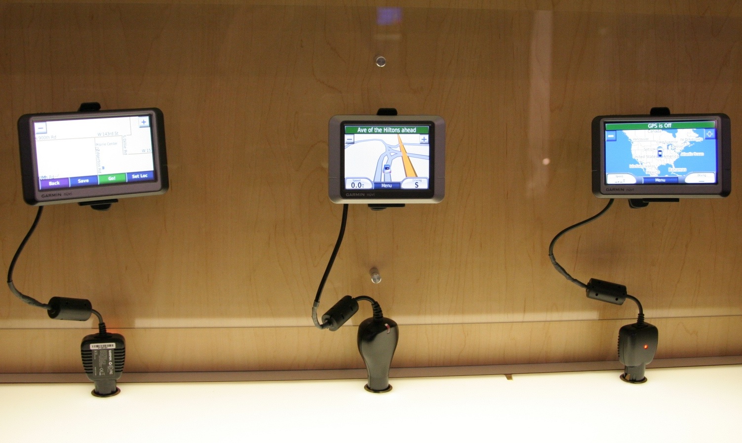 A few days ago you guys got the preview of Garmin’s nuvis. Well, I’d like to confirm that they are as slim and featureless as they seem in the heavily-optimized press shots they released. I fiddled around with them for a bit; the touchscreen is responsive but doesn’t really jump, and the display is nice and bright. The 5000 was great and felt really meaty. Garmin had crippled the things for display, and I couldn’t get as much out of them as I’d like to have, but it was enough to tell that these things are great little devices. Bigger pictures if you want em, click below.