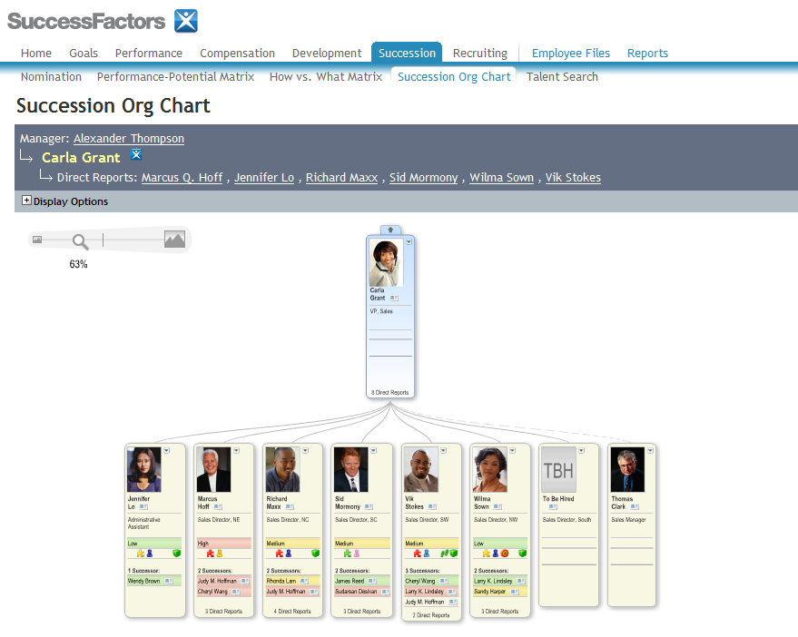 From the looks of things, SuccessFactors tries to do a lot of things at once. Not only does the software intend to help with employee management, it also serves as an employee directory and organizational mapping service. If I were an employee of a company that used SuccessFactors, I think I would actually find it much more useful for finding information about my colleagues than for charting developments in my career. But perhaps others are compelled to structure their goals explicitly and use it to determine whether they are competent enough to fill a new position.