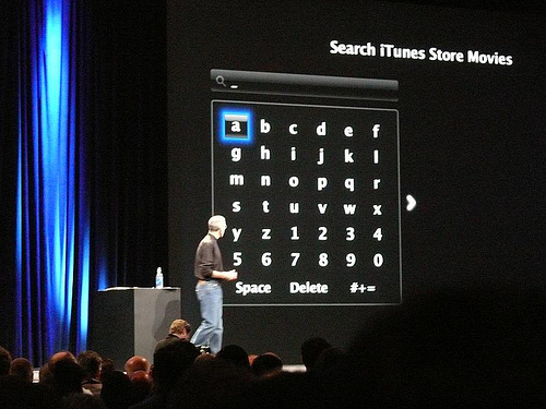 9:48am: One button interface for iTunes rentals on Apple TV. Remarkably simple to use, at least in the demo