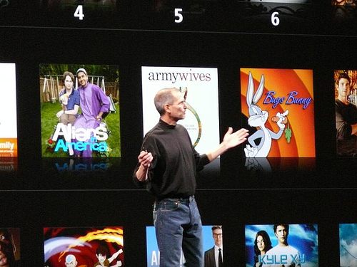 9:37am: MGM , Lionsgate, Miramax , 20th Century FOX, WB, Disney, Universal, Sony, Paramount…. I’m not sure if there’s any missing. SJ says “iTunes Movie Rentals has EVERY MAJOR STUDIO”