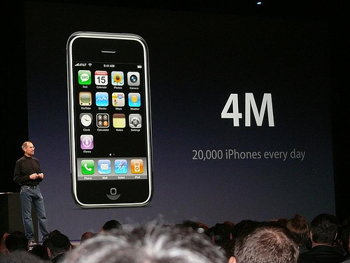 9:21am: Steve moves to iPhone. Apple has sold 4 million iPhones to date. Marketshare in the US is an amazing 19.5% of the smartphone market