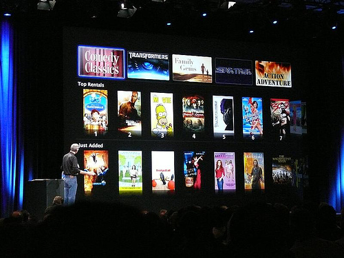 9:39am: 1,000 films by the end of February, will have films 30 days after DVD release, will be viewable on PCs, Macs, iPhones. Will be available instantly, 30 seconds on fast broadband. Rules: you have to start watching it, 24 hours to finish