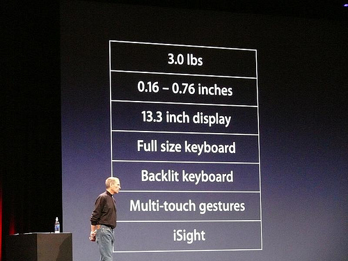10:23am: 5 hours battery life for Macbook Air, compared with competitors at 1 1/2 hours