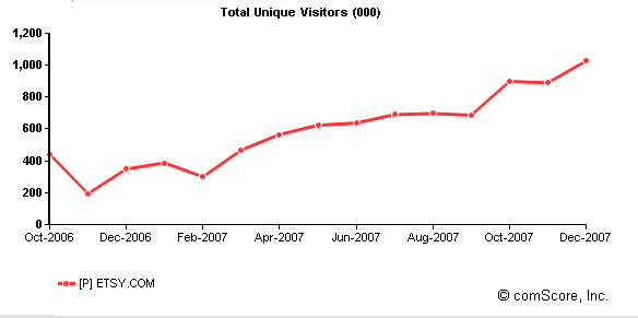 In other words, Etsy is growing up. And it needs cash to do so. The site reached 1 million unique visitors in the U.S. last month, according to comScore (1.6 million worldwide), doubling from last April.