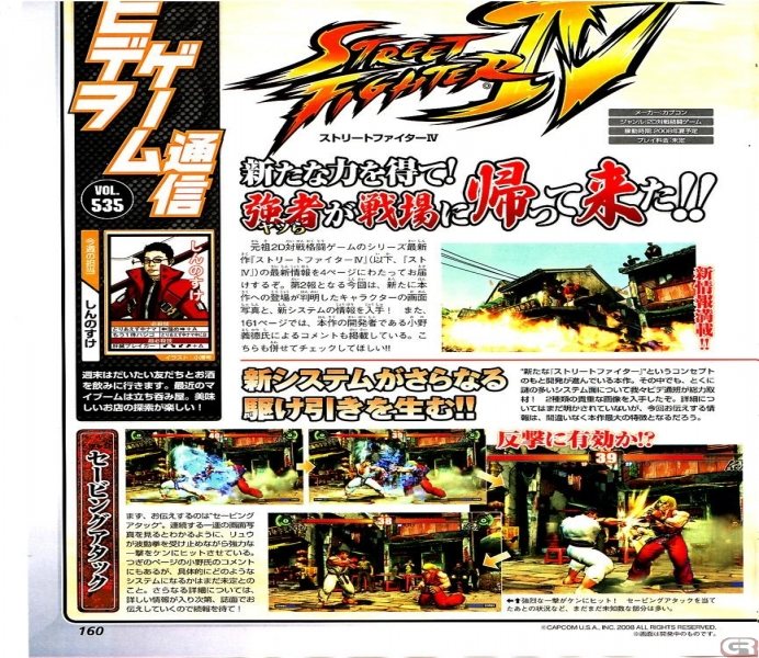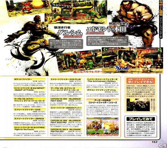 Methinks these scans are slightly distorted, or else the art director for Street Fighter IV has a thing for squat, powerful young ladies (and beasts). Either way, I’m pumped for some SFIV, though my heart will always be with Samurai Shodown II or IV — Ukyo FTW! Anyway, check out the character art and a few screens straight from Famitsu.