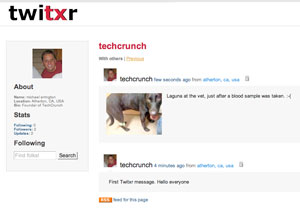 FON (better known for building a WiFi community) launched Twitxr today through their FON Labs group. Basically, it’s Twitter but allows picture uploads when sending a message (which makes it particularly useful for camera phones). FON founder Martin Varsavsky announced the product on his blog.