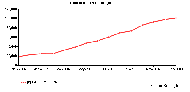 Worldwide, Facebook is still doing fine. It grew 3 percent in January over December, attracting 100.7 million unique visitors. (MySpace had 109.3 million visitors worldwide, up 2 percent month-over-month. And in the U.S., it was slightly down as well from 68.9 million visitors in December, 2007 to 68.6 million in January, 2008. Despite its larger size, though, MySpace lost fewer visitors in the U.S. than Facebook did).