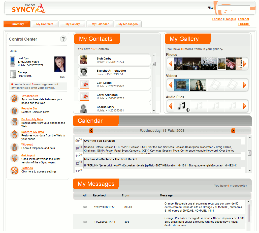 While Syncy supports over 700 handset models, the iPhone isn’t one, so I took it out for a spin by installing it on a SonyEricsson phone. The feature that won me over was the ability to get immediate Web access to the photos and videos I’ve takes of our kids using the phone. Incidentally, the last time I had digital copies of such files was when I switched handsets. That’s when I had no choice but borrow a cable and install Nokia’s phone management application—by far, not a user-friendly proposition to access “everyday media”.