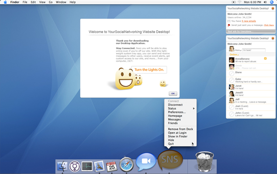 Userplane is announcing a second version of their Desktop product that’s based on newly released AIR and therefore compatible across operating systems. The Desktop product enables web developers to extend functionality outside of the browser with instant messaging, notifications, advertisements, and other general messages.
