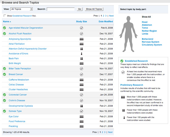 I promised to post the results so people can get an idea of what 23andMe is offering (without paying that fee), and here they are. Also, as of last week 23andMe started allowing users to create free demo accounts. if you create one, add my username, TechCrunch, as a friend and I can share the data with you directly.