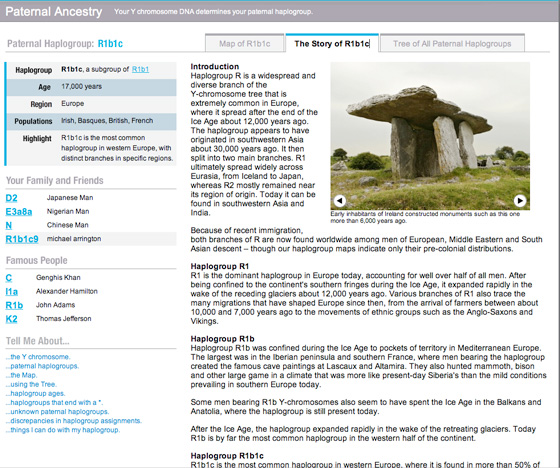 Once you have your test results in, you can view them in the Gene Journal. 23andMe is adding more information over time about your gene map (they added 30 more traits last week, including paternal ancestry). Here’s a screenshot: