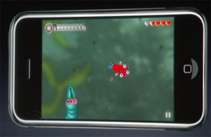 Among the launch partners, Electronic Arts debuted the highly-anticipated game Spore on the iPhone. Salesforce showed how iPhone users will be able to track sales leads, AOL showed off an instant messaging client, Epocrates demoed a drug lookup application, and SEGA played a Super Monkey Ball game.