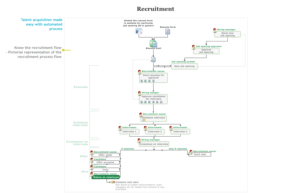 Zoho People is a Web-based enterprise app for managing human resources—recruiting, org charts, HR forms, an employee self-service portal. Here are some screenshots and an online demo.