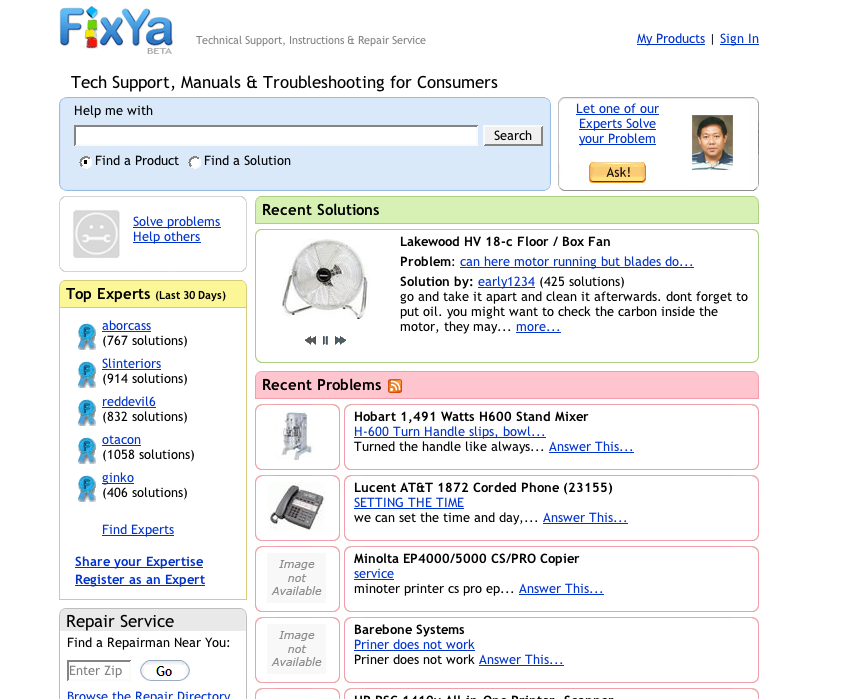 Companies hate providing good tech support for their products because it is expensive. And consumers hate calling up tech support when they can’t get a gadget to work properly because they usually get the run-around. The idea for Fixya is quite simple: Let consumers help fix each other’s gadgets.