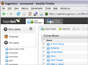 While the photo app required users to change their behavior by giving up other apps like iPhoto and Picassa, SugarSync syncs files from the file system level. Once users download, install and configure the SugarSync client (available for both PCs and Macs), they don’t have to use any SugarSync-specific programs to edit and organize their files. As long as these files reside in folders that have been configured for synchronization, they will be kept up-to-date with not only Sharpcast’s cloud storage but all other synced computers as well. Make a change to a file on your PC and that file will be instantly updated on your laptop as well, assuming both devices are turned on and connected to the internet. You’ll also be able to access these synced files through the web browser wherever you go.