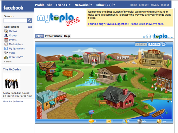 Here’s the thing: the games work across all of these platforms. You can be on Facebook playing cards with one friend on MySpace and another on Bebo. And you can control what people on each network see about you. For instance, you can present your real profile to your friends on Facebook, and a different Mytopia avatar to everyone else. These are the sort of apps that could one day break Facebook’s, or any social network’s, hold on its members.