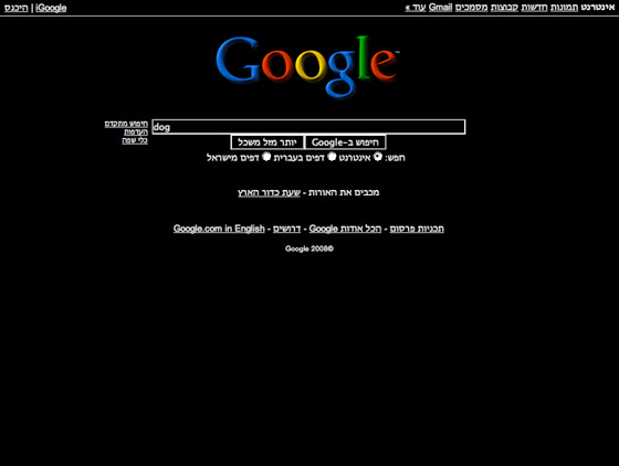 Google users in Israel will notice today that we “turned the lights out” on the Google.co.il homepage as a gesture to raise awareness of a worldwide energy conservation effort called Earth Hour.