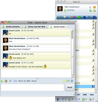 The interoperability Babuki provides with other IM services is certainly the main advantage it has over Facebook Chat, which will eschew the Jabber (XMPP) protocol in favor of a proprietary one. The Mac and PC compatible desktop client also gets a big thumbs up from me.