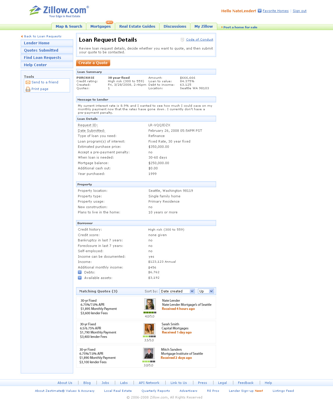 According to the company, Zillow attracts about 5M unique visitors monthly, 1/5 of which are looking for a loan and 2/3 of which are looking to buy or sell a home. We’ve also been told that 1 in 3 professional lenders visit Zillow every month. This traffic is therefore a natural fit for a service like this, which shouldn’t have a problem gaining traction.