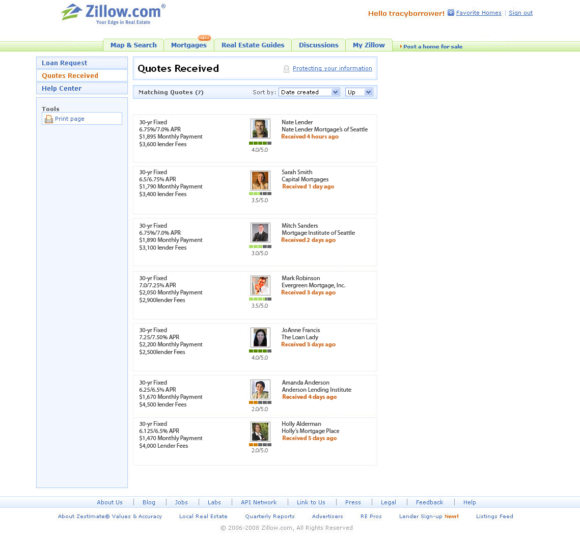 Zillow cites a Harris Interactive study showing that it’s more important for borrowers to keep their contact info private than to find the best rates. Apparently lenders are a bit too eager to sell you on a deal after they know how to find you. So the main advantage of this marketplace lies in protecting borrowers’ identities and tipping the balance of power into their favor.