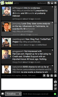Twhirl is considered among the better third party Twitter applications. ReadWriteWeb, for example, just yesterday identified it as the third most used method for posting to the Twittersphere, behind the web and instant messaging, and just in front of Twitterific. It has been downloaded 100,000 or so times.