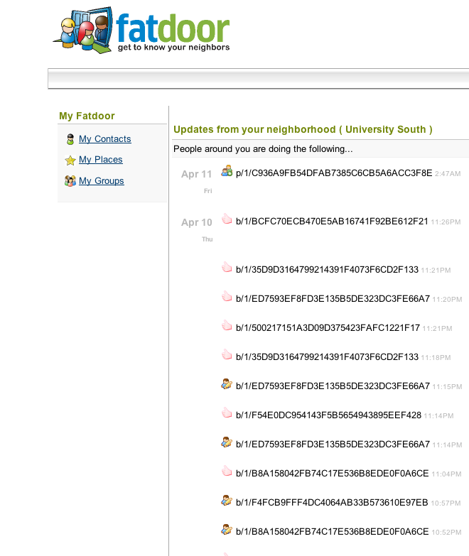 Maybe it is just because it had a really bad name. Or maybe it is because nobody really likes their neighbors. Or, if they do, they actually prefer to talk to them in person. Whatever the reason, FatDoor, a social network for neighbors, is closing its doors. We are placing it in the deadpool. Visitors to the site, which sadly never even emerged out of private beta, can now see nothing but unintelligible gobbledy gook.