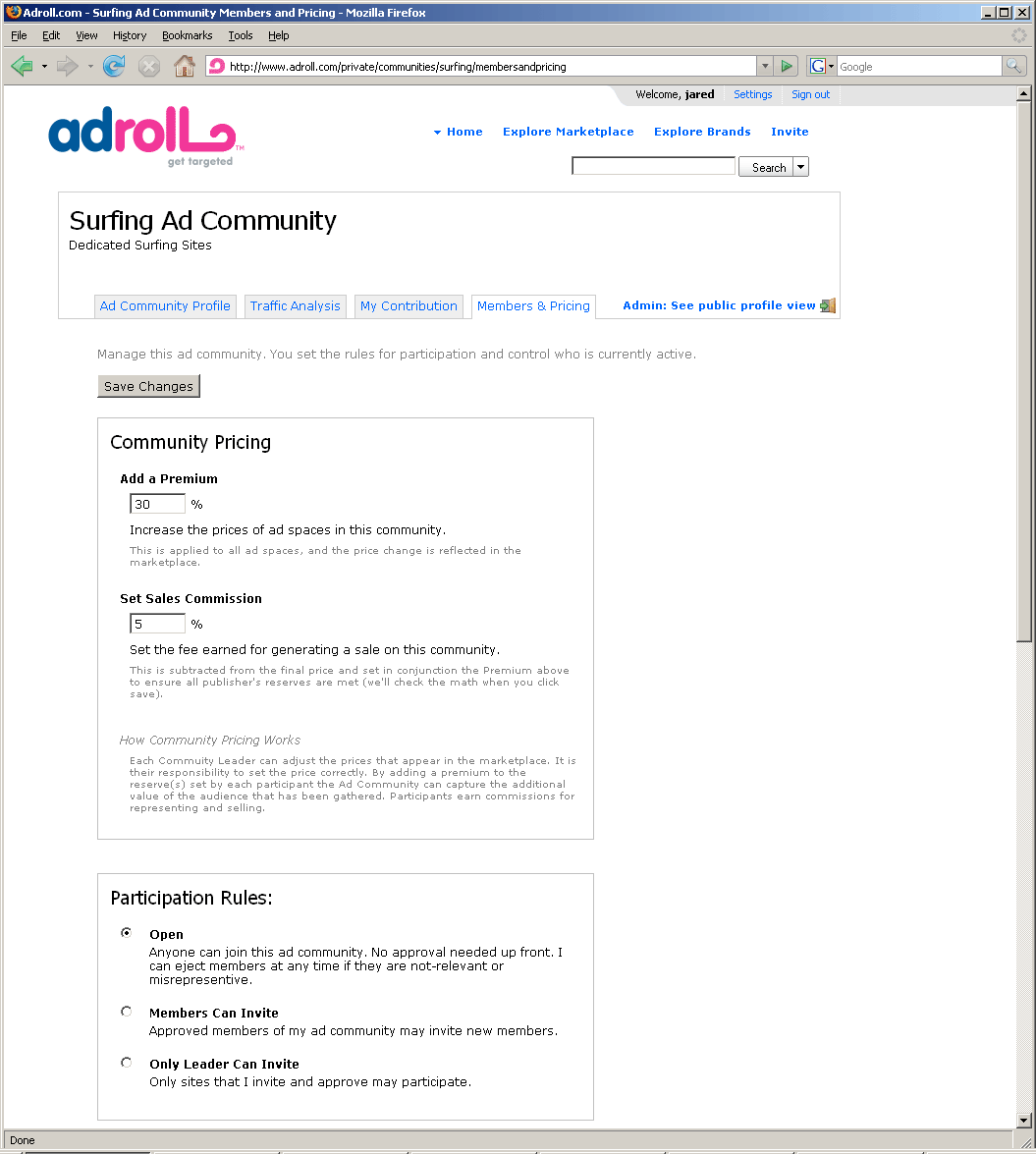 But where AdRoll becomes interesting is when blogs join communities of like-minded blogs. For instance, there is a community for surfing blogs, car blogs, sports blogs, and book blogs. By joining forces, 6 to 12 blogs with similar readerships can offer half a million to a million readers a month that share a common interest. During the private beta, about 600 publishers created 140 different communities. In order to motivate blogs to join a community, AdRoll only takes a 20 percent cut from ads that run across these groups, leaving more ad dollars on the table for the blogs. Says Kopf: