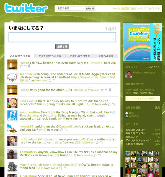 Twitter Japan launched today at Twitter.jp via a partnership between Twitter and Digital Garage. It’s basically Twitter, in Japanese, with display ads.