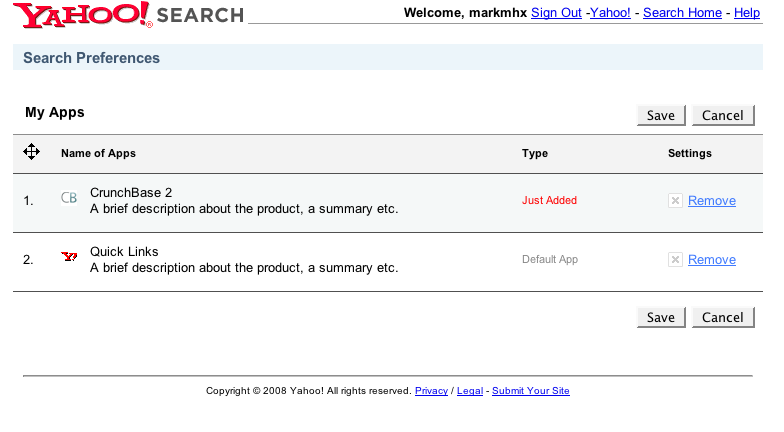 Perhaps the only question left, then, is how Yahoo will promote these applications to its search users. Facebook benefited from powerful viral channels when it kicked off its platform, but we have yet to see how Yahoo will attract users to its applications. Some of the applications (for larger, more prominent sites) may be enabled by default, but the vast majority will presumably require people to manually opt in.