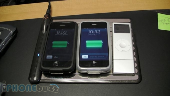 iPhoneBuzz grabbed an exclusive look at the new wireless charging. The technology is still in its early stages and actually quite kludgy but to be able to drop my gadgets on my bedside table and have them charge overnight would be amazing.