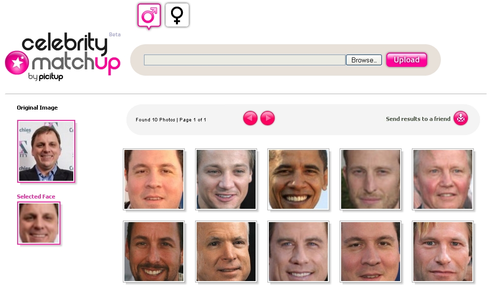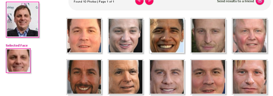 Another issue that left a sour taste in my mouth was CelebrityMatchUp, an attempt to add some light-hearted fun to the beta interface. The idea here is that users upload photos of individuals and have Picitup produce results of people they resemble. This doesn’t exactly work. For instance, consider that Michael Arrington’s photo brought back results that he resembles both Barack Obama and John McCain. Huh?