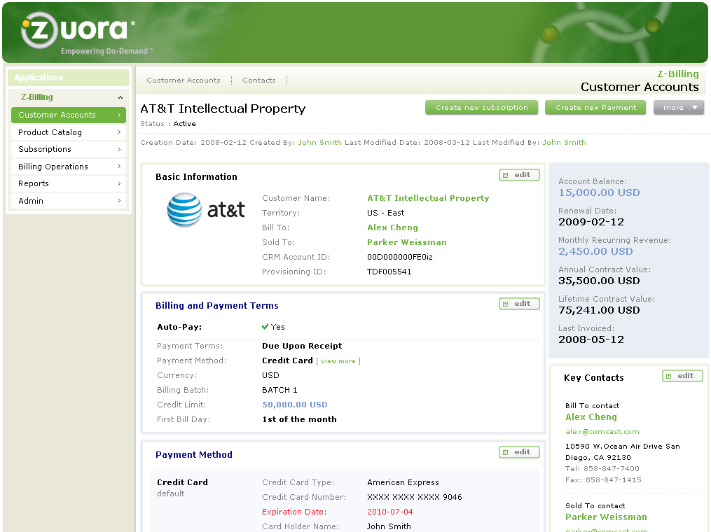 Its so-called “Z-Billing Platform” that goes live today handles four main billing-related areas: customer accounts and subscriptions, product catalogs, billing operations, and order management. The whole offering is provided a la Salesforce as an on-demand solution. Online businesses just need to configure their Zuora accounts, import data from their old billing systems, and plug in their sites through a set of APIs. Customers who buy items or subscribe to services on their sites will then get handled by Zuora, which tracks orders, invoices and payments.