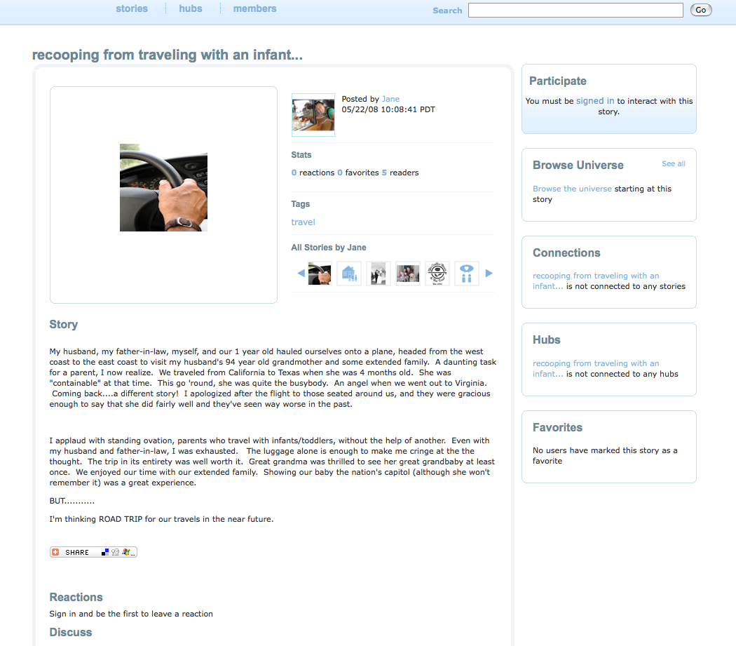 At first glance, Tokoni seems like a pretty half-baked idea. People have been sharing personal stories online since the dawn of Usenet, and allowing members to group stories by topic isn’t exactly a novel feature. Why not use a blog?