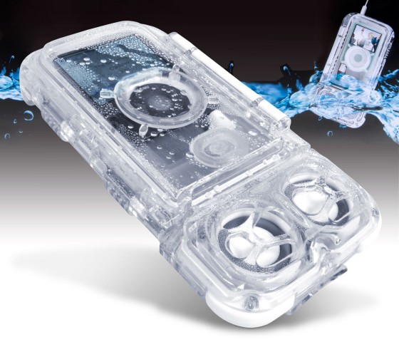 These waterproof speakers seem to hit a pretty good combination of price, looks, and functionality — assuming they sound good. The set can hang by a strap for the shower, or you can use the built-in stand to put it in the soap dish if you’re the bath type. It’s only for iPod Nanos, but there are plenty of you with those out there. The touch wheel area has a little membrane you can control the thing through.