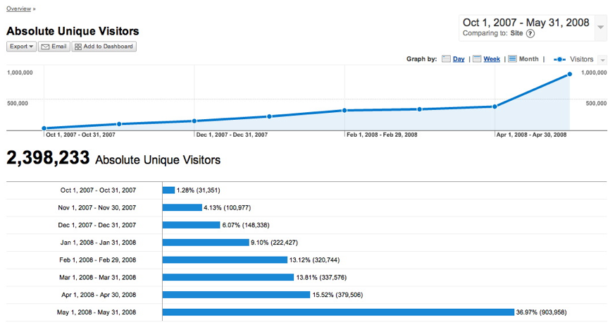 To put that into perspective, only 2.4 million people have ever visited Mixx since it launched in September, 2007. In other words, more than a third of all the people who have ever gone to Mixx, went there last month.