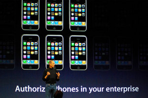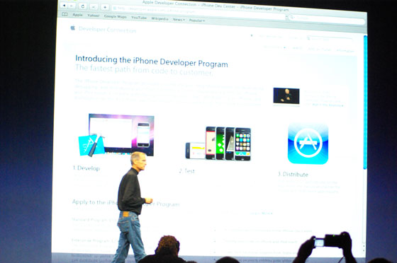 11:08 – App store launched in July. Free for iPhone uses, $9.99 for Touch users. Apps are secures. No charge to give away apps free.