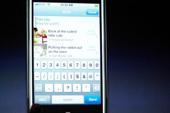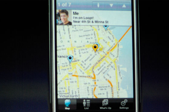 10:34 – Loopt, location based social networking. Connecting with people on the go. We make serendipity happen.