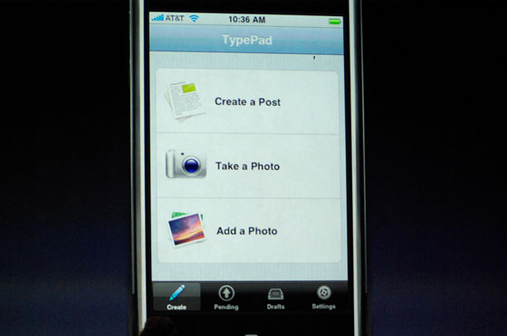 10:36 – Typepad. Very easy to post on your blog. “Incredibly easy” to post photos. Free in the app store.