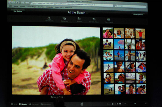 10:25 – Cool interface. Lots of “tricks.” All of this is shown on Safari. “Send to Mobile Me.” Send photos online.