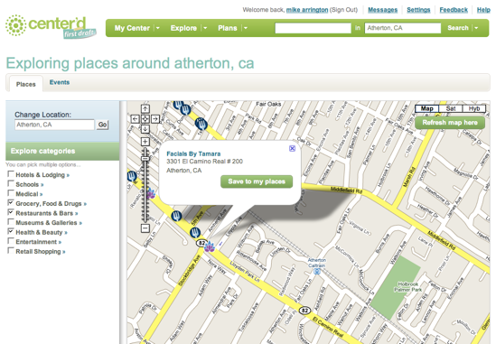 The company started out as FatDoor, a failed social network for neighbors. It took the $5.5 million it raised last October from Norwest Venture Partners and Keynote Ventures, and rebooted as Center’d. The chief technology officer is Chandu Thota, previously the lead developer on Microsoft Virtual Earth. I reviewed the site last April: