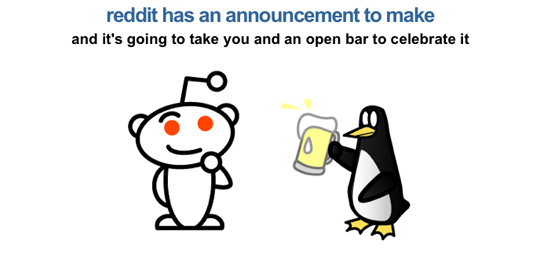 Social news website Reddit will be making an announcement at its invite-only party tomorrow in San Francisco. Invites include the image above, prominently featuring a mysterious penguin alongside the company’s logo (the alien thing). So what are they getting at?