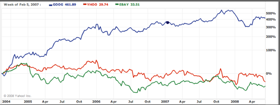 A decade ago, the leading Internet companies were AOL, Amazon, eBay, and Yahoo. With the exception of Amazon, which is experiencing a renewal as it embraces digital distribution and cloud computing, they all fell by the wayside because they failed to adapt to a major market transition. For AOL, it was the transition to broadband. For eBay, it was the rise of search as the primary way to find goods to buy online. And even Amazon had its dark days.