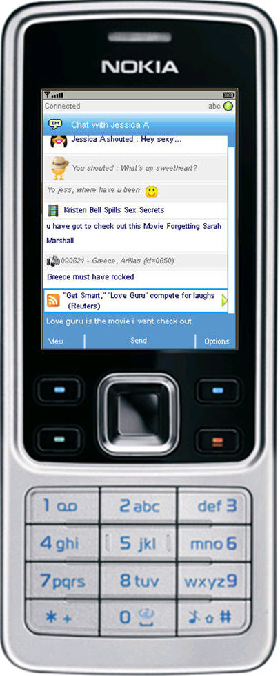In addition to the basic IM functionality, Jibe lets you send outs “shouts” (little emoticon-like avatars who say things like “What up Dude?”), share photos from Flickr, videos from YouTube, or stories from RSS news feeds. The shouts come out as both text messages and short audio messages through your phone’s speaker.