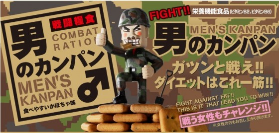 The official tagline to promote sales of the crackers is: “Japanese men! Fight obesity! Fight against fat! This is it that you lead to win!” One box of the Nippon-only food costs $45.