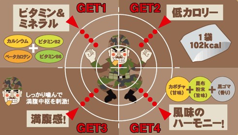 Greenhouse claims the cookies were given to Japanese soldiers during WWII and are based on an ancient Egyptian recipe. By eating 50 grams, men take in just 204 calories. According to Greenhouse, the nutritional value is the same you get from a typical Japanese lunch box with 850 calories.