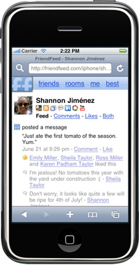 FriendFeed, the popular social network feed aggregator, has released a new version of its site that has been optimized for the iPhone. While FriendFeed has always featured a relatively spartan design, the standard version sports small fonts that make text difficult to read on the iPhone’s screen. The new version has increased the font size, and has further tweaked link placement and picture sizes to make the site more accessible to mobile users.