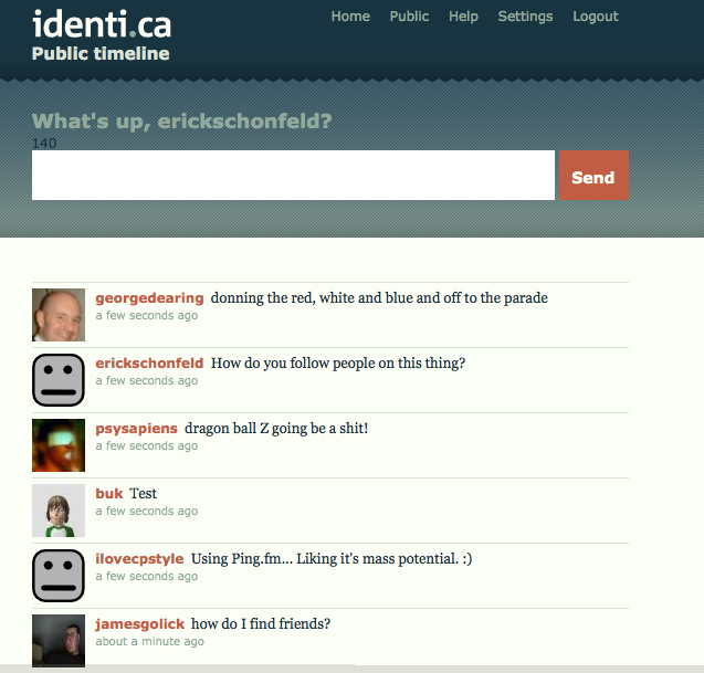 Identi.ca is the brainchild of Canadian developer Evan Prodromou (a Californian living in Montreal), who explains the thinking behind the project here. He has a lot of good ideas. In particular, we agree that decentralizing Twitter is the key to making it scale better, although there are other ways to do that as well. The service is also based on the idea that you can take your data with you at any time to any other microblogging service.
